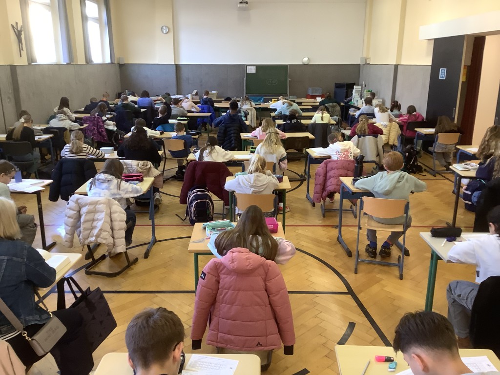 90 Schülerinnen und Schüler des UG stellten sich am Donnerstag 75 Minuten lang den Aufgaben des weltweiten Mathematik- Wettbewerbes ... und knobelten bis die Köpfe rauchten.
