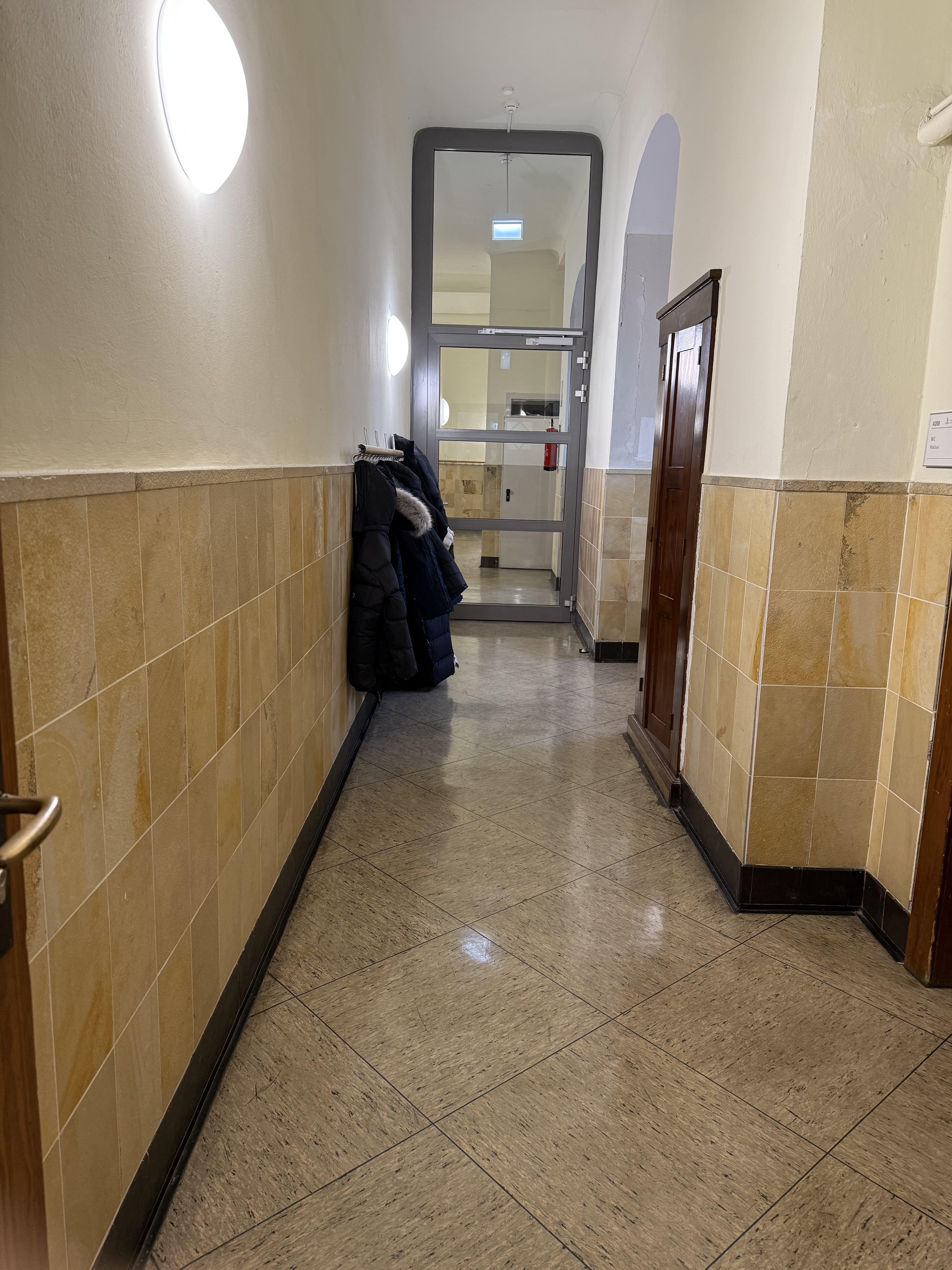Dahinten ist eine Tür. Hoffentlich ist sie nicht verschlossen