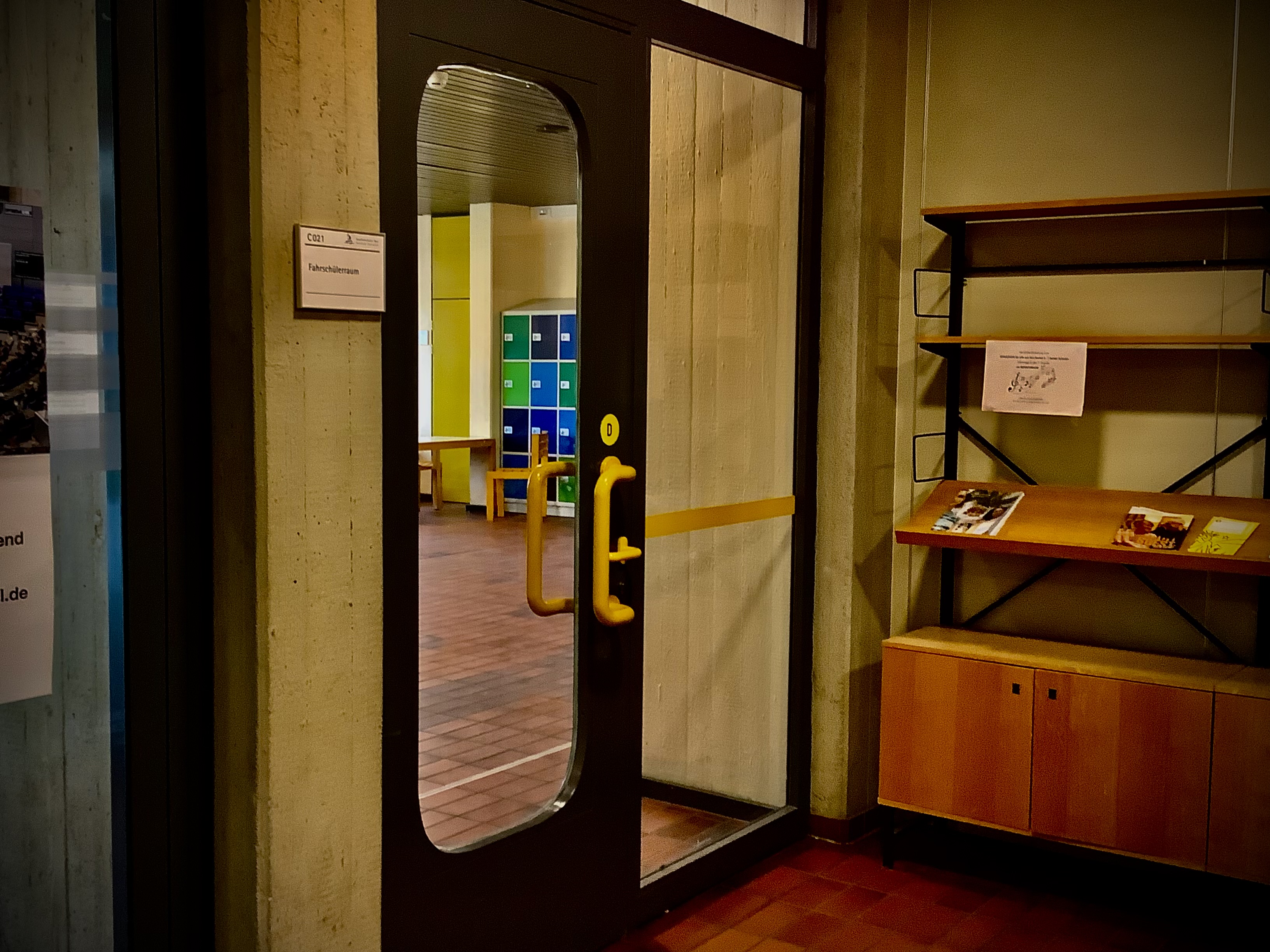 Nachdem du das Fenster eingeschmissen hast un hindurch geklättert bist, bist du im Fahrschüerraum.