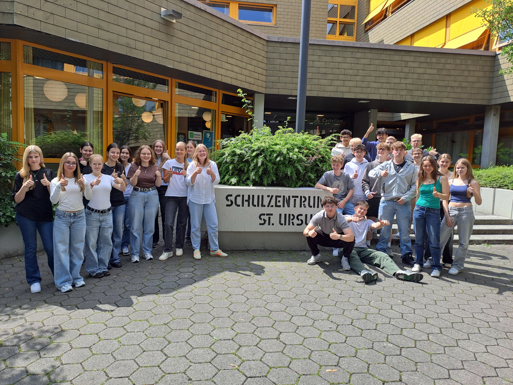 Traditionell werden kurz vor den Sommerferien die besten Vorleser*innen der Französischkurse der Jahrgangsstufen 7 und 8 des UG ermittelt. So auch im Schuljahr 2024/25. Nach einem Auswahlverfahren in den jeweiligen Kursen konnten sich jeweils zwei Schüler*innen pro Kurs (also vier pro Stufe) für die finale Runde im Forum der Ursulinenschulen qualifizieren.