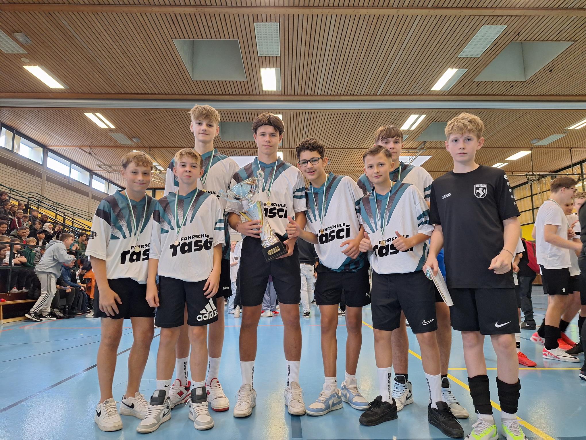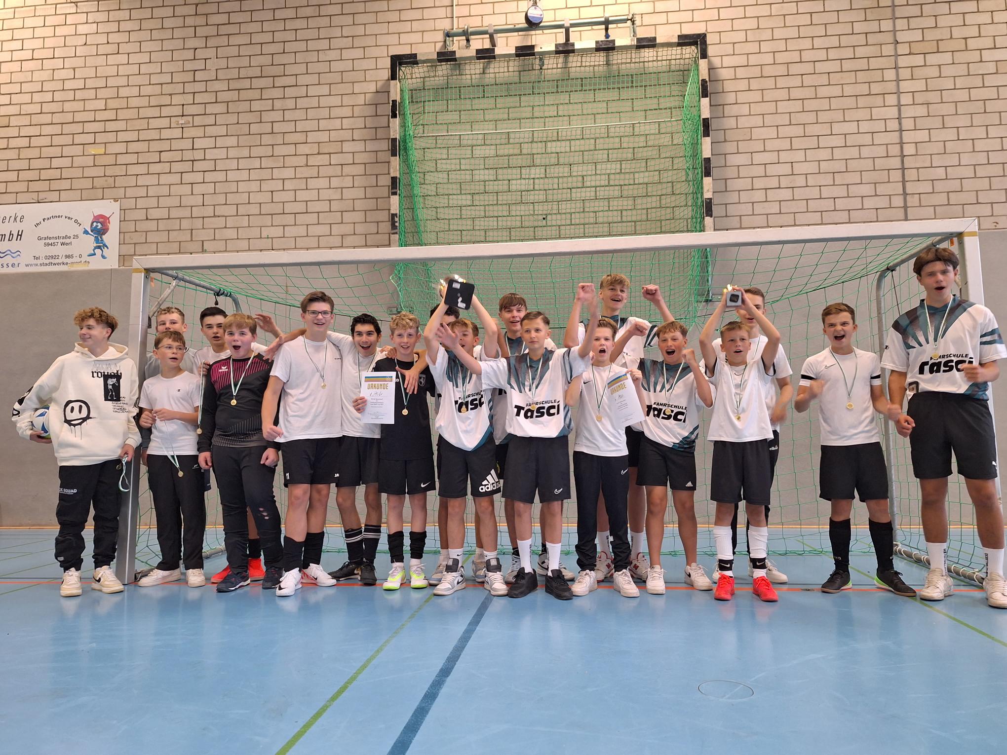 Unser erstes Spiel gewannen wir mit 3:1 gegen die heimische Sälzer-Sekundarschule. Anschließend bestritten wir eine Partie gegen die Ursulinenrealschule, welche wir souverän mit 5:0 gewannen. Beim nächsten und damit das dritten Spiel stand die Sekundarschule Wickede auf dem Programm. Dieses Spiel konnten wir mit 2:0 gewinnen, hatten also 9 Punkte auf dem Konto und ein Torverhältnis von 10 zu 1: Erster Platz! In unserem nächsten Spiel gegen das Marien-Gymnasium Werl konnten wir nur einen Punkt holen, da das Spiel torlos 0:0 ausgegangen ist. Das vorletzte und wahrscheinlich schwierigste Spiel gegen den Favoriten, das Aldegrever-Gymnasium, konnten wir durch ein toll herausgespieltes Tor in der letzten Minute mit 1:0 gewinnen. Unser letztes Spiel gegen die Sekundarschule Soest gewannen wir erneut mit 1:0.