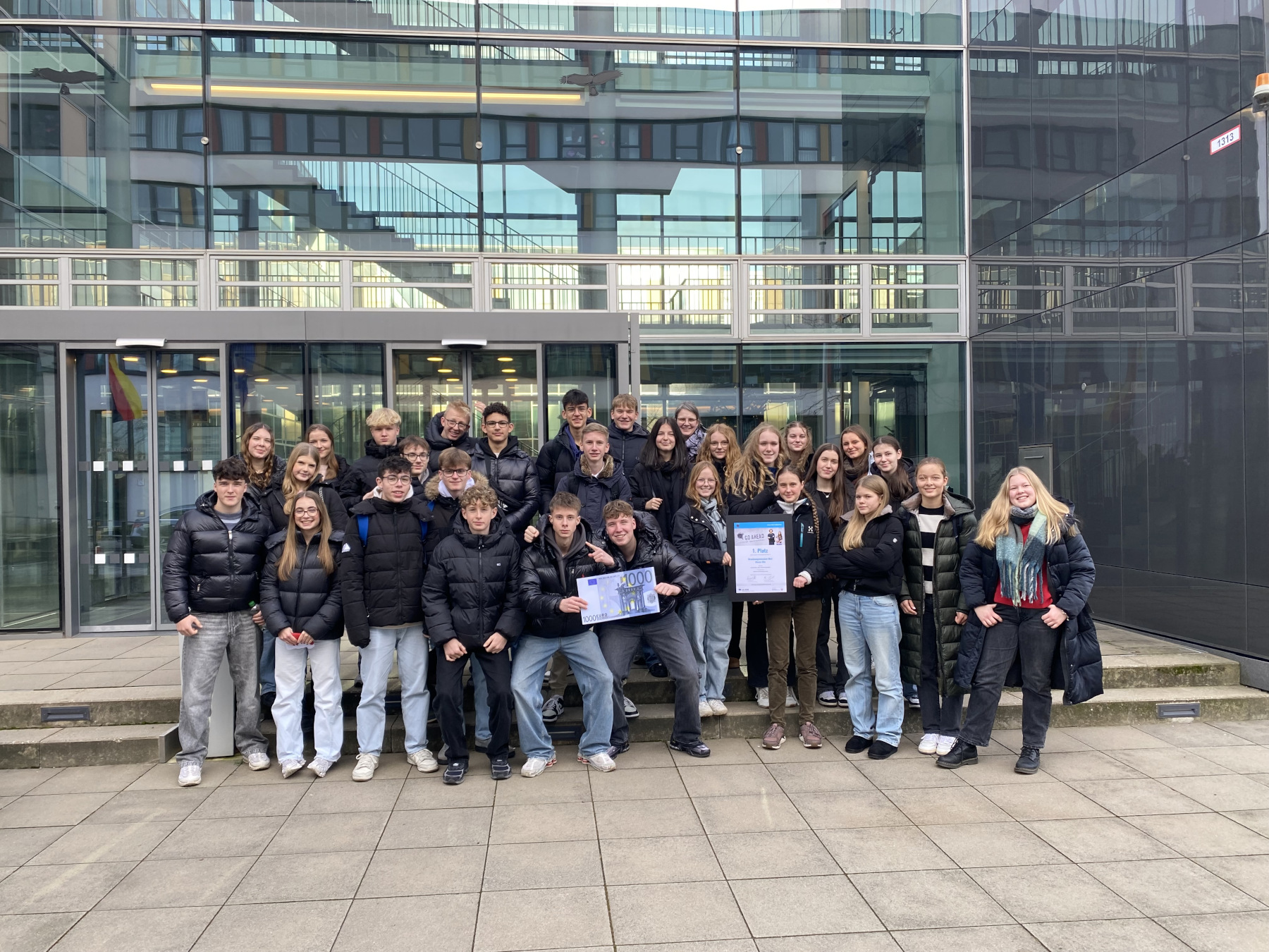 Weit über 50 Schülerinnen und Schüler der Klassen 10a und 10b des Ursulinengymnasium hatten vor den Sommerferien Beiträge eingereicht. Am letzten Tag vor den Weihnachtsferien wurde nun das Musikvideo „Egal, ob groß und klein“ der Klasse 10a im Rahmen der Preisverleihung im Schulministerium in Düsseldorf mit dem 1. Platz und einem Preisgeld von 1000€ ausgezeichnet.