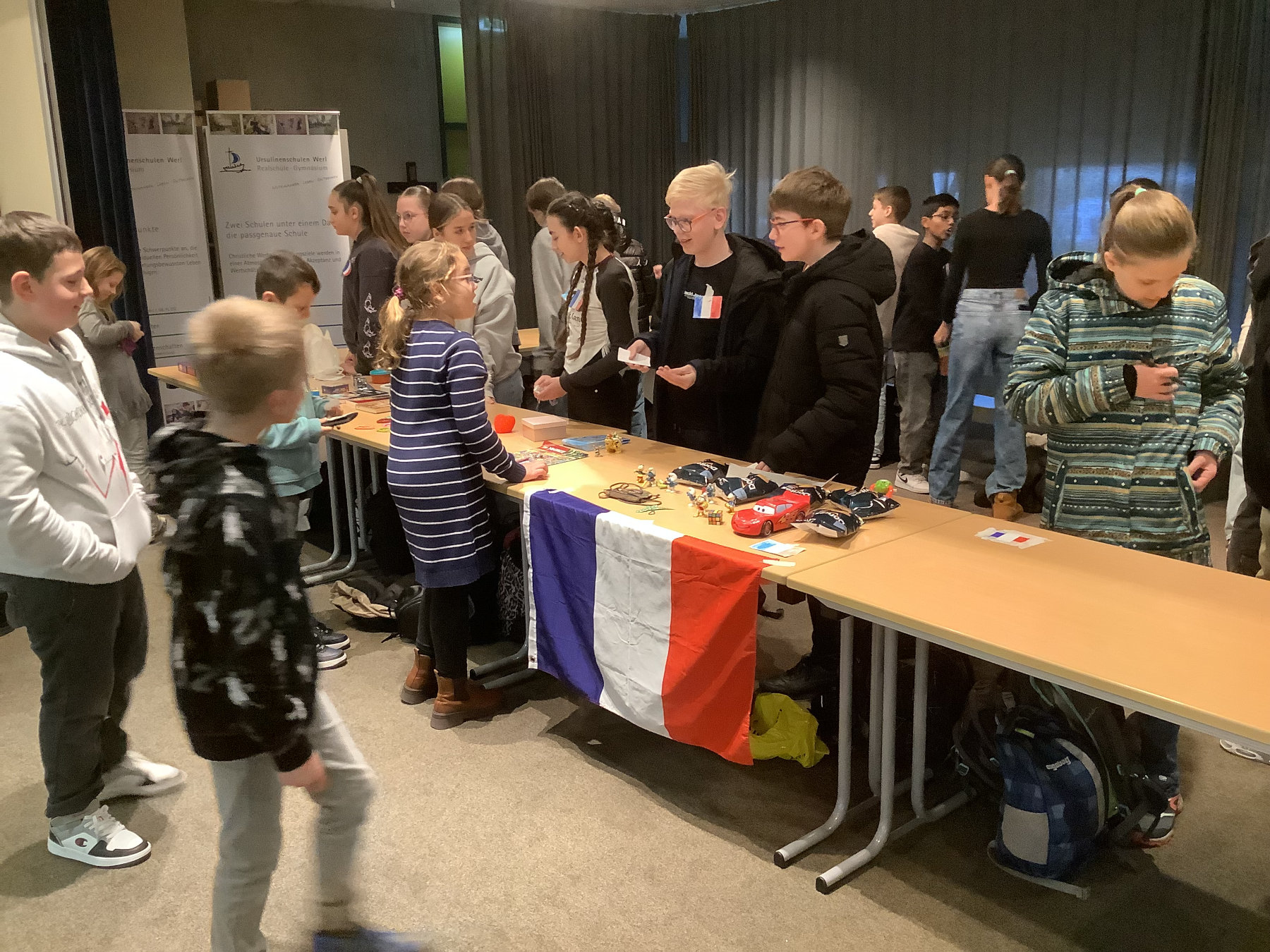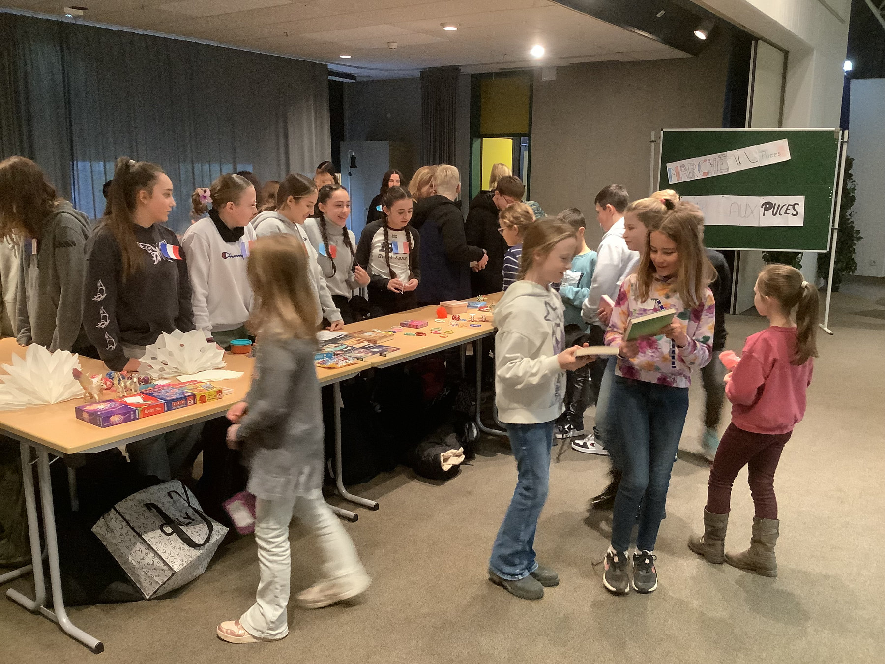 Am 28. November 2024 fand mit den Viertklässlern der Europa Grundschule Ense-Höingen ein Flohmarkt im Forum unserer Schule statt, und das richtig Spaß gemacht. Wir haben auf Englisch und Französisch viel miteinander gesprochen und dabei viele tolle Sachen gekauft und verkauft, wie Bücher, Spiele und selbstgemachte Dinge.
