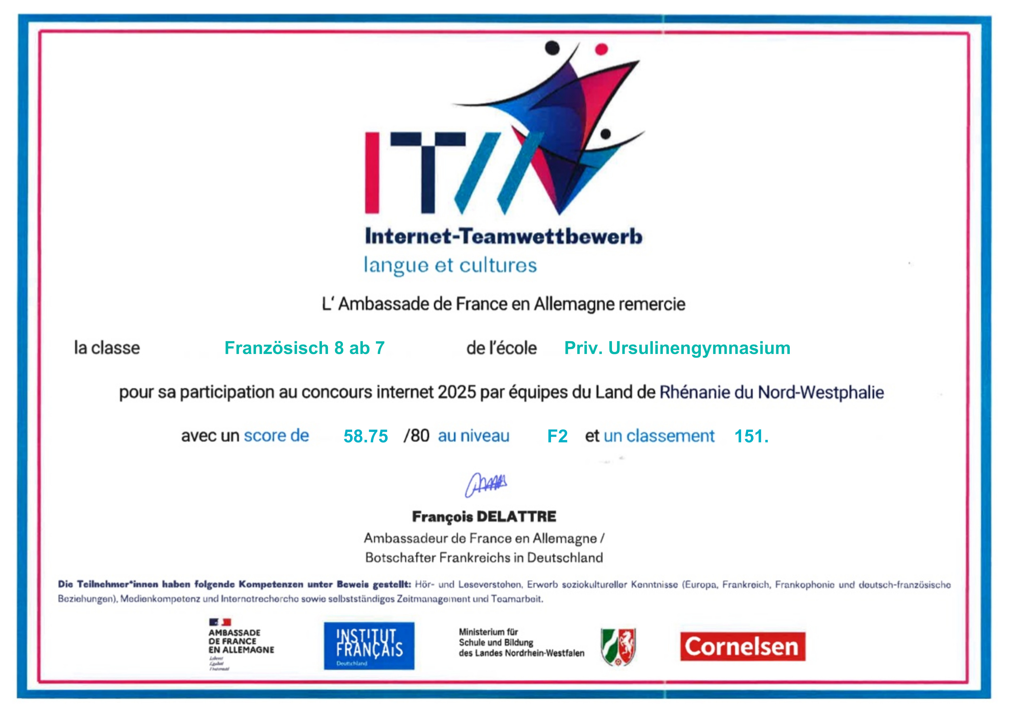 Der Wettbewerb, an dem die Französischkurse der Stufe 8 am 22. Januar teilgenommen haben, richtete sich an alle Schulen in Deutschland und sprach Schülerinnen und Schüler aller Altersgruppen und Niveaustufen an.