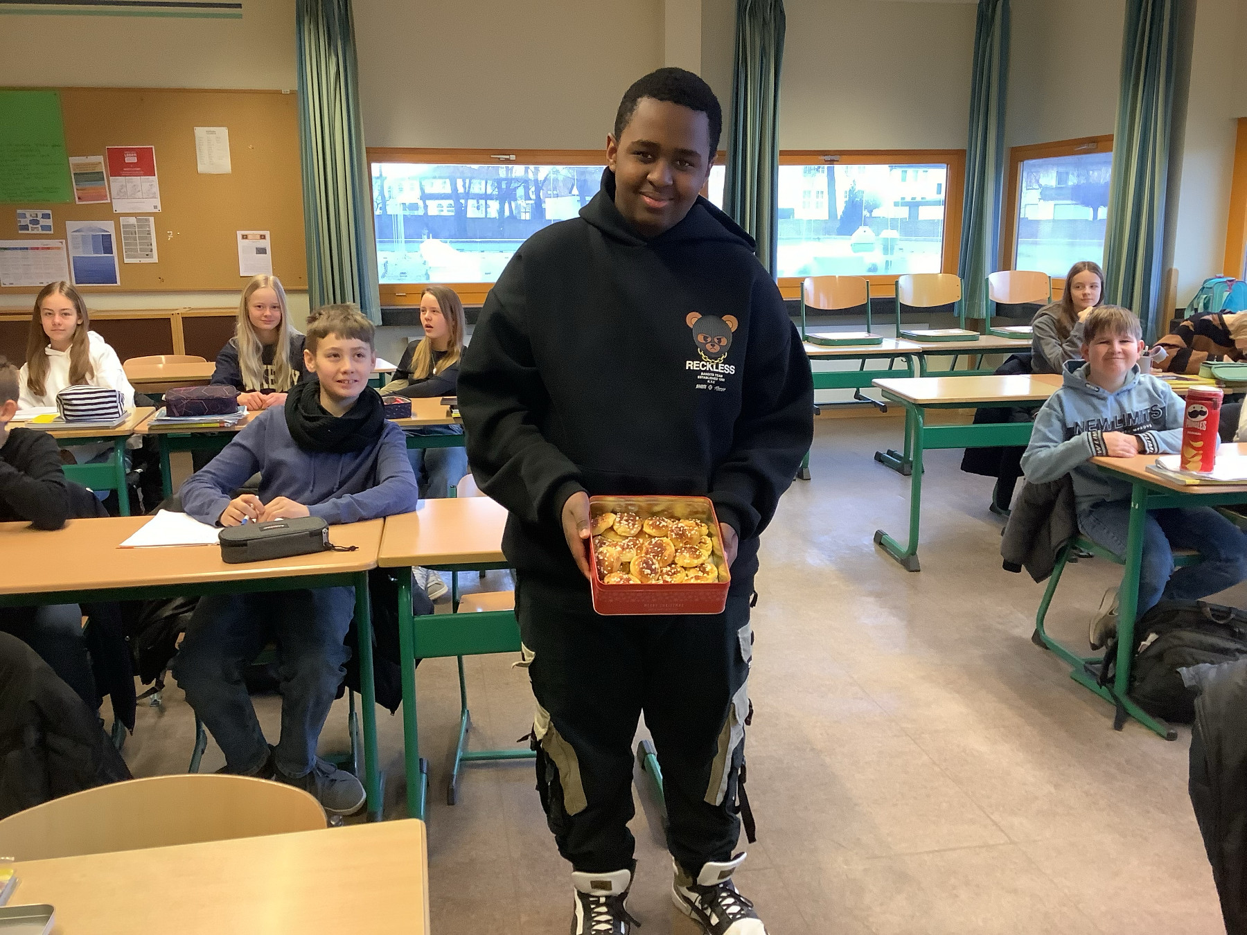 Während Lola in dem Schulbuchvideo ihre gerade gekauften Chouquettes bei einem Missgeschick auf den Boden fallen lässt, hat Elhadj Diallo seine selbstgebackenen kleinen Windbeutel sicher in einer Box zum Französischunterricht transportiert und unter den Mitschülern verteilt. Die griffen gerne nicht nur einmal zu.