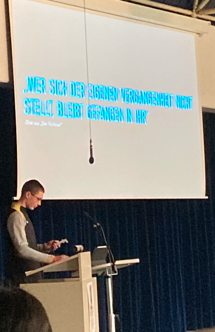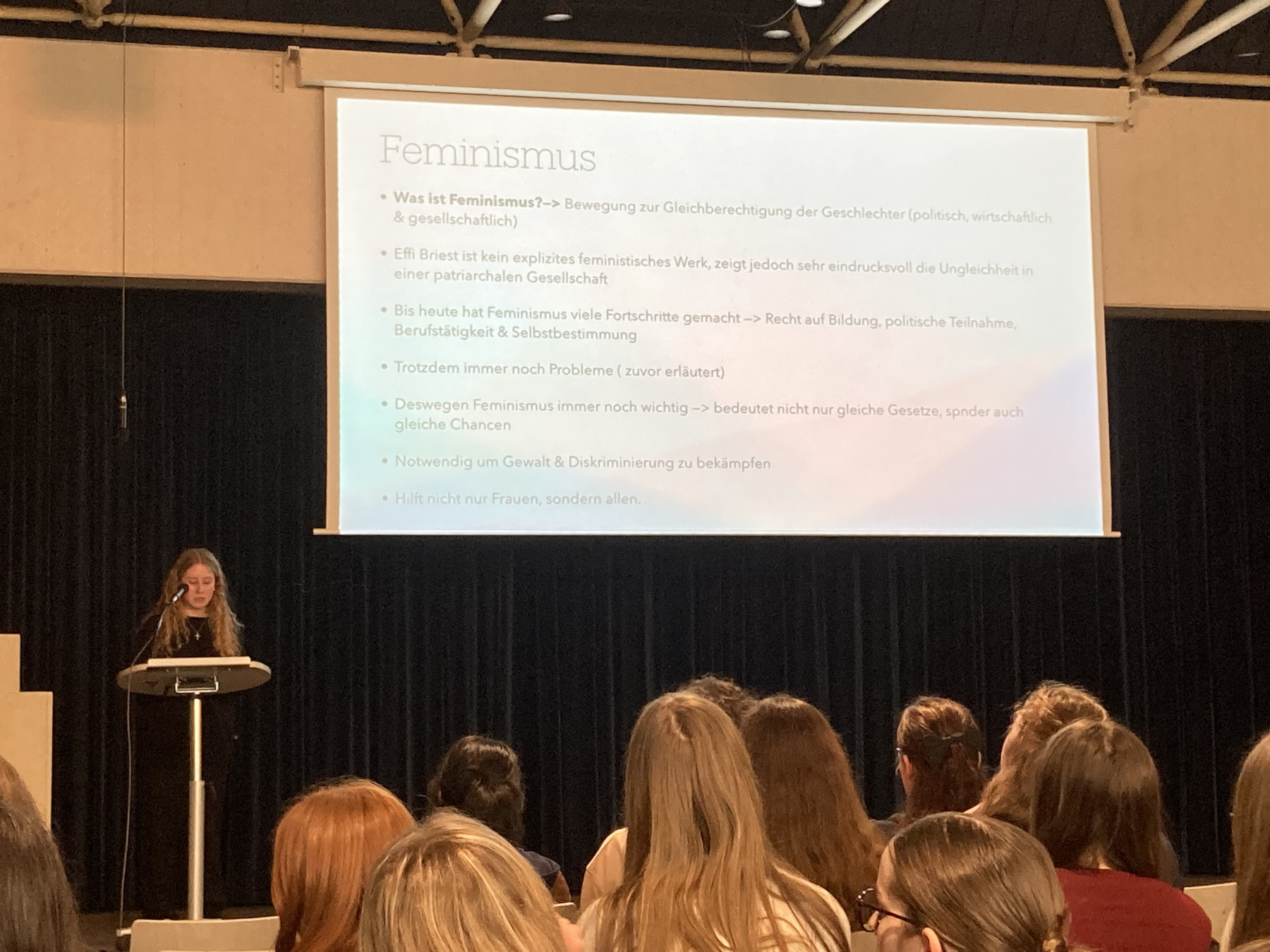 Jeder Schüler und jede Schülerin hatte zuvor einen "Klassiker der Weltliteratur" zugelost bekommen und versuchte nun, diesen auf die Aktualität hin zu untersuchen und einer kritischen Sicht zu unterziehen. Ob Goethes "Faust", die Grimmschen Hausmärchen, "Der Vorleser" von Bernhard Schlink, "Der Untertan" von Heinrich Mann... - 23 verschiedene Werke mussten es sich gefallen lassen, auf Herz und Nieren geprüft zu werden...und siehe da: Am vergangenen Freitag gingen acht Schülerinnen und Schüler für uns auf die große Bühne ins Forum und bewiesen ihr Können vor der gesamten Stufe. Wer kann UG´s "Best Performer" werden? Auch wenn es nicht allen gelang, die Kernfrage "Warum ist dieser Klassiker immer noch Teil der Weltliteratur und für uns heute überhaupt noch lesenswert?" in den vorab vereinbarten 5-8 Minuten zu beantworten, überzeugten die Bezüge zur Gegenwart auf ganzer Linie: Da gab es plötzlich nachvollziehbare Parallelen zwischen dem korrupten Richter Adam aus Kleists "Der zerbrochene Krug" und D. Trump. "Effi Briest" stellte eine hervorragende Vorlage zu einem heißen Plädoyer für den Feminismus in unserer Gesellschaft dar. Schnitzlers "Traumnovelle" zeigte die Bedeutung verschiedener Lebens- und Liebesformen heute auf und Schlinks "Vorleser" legte vor der Bundestagswahl am 23.02.25 den Finger in die Wunde der Geschichte, denn: "Wer sich der eigenen Vergangenheit nicht stellt, bleibt gefangen in ihr."