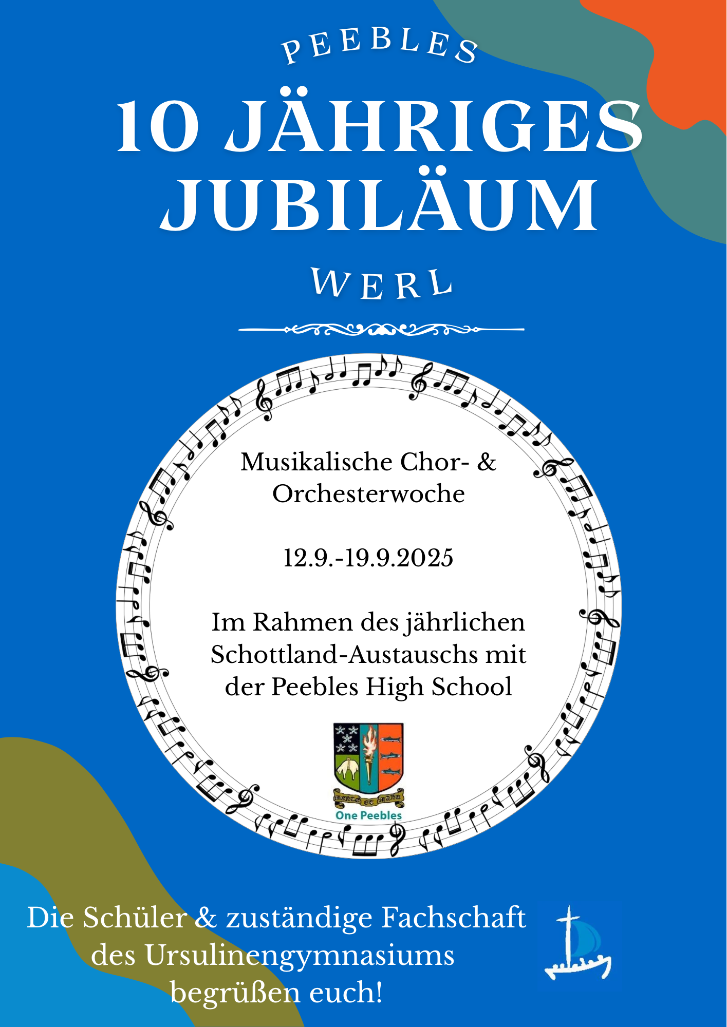 Der Schottland-Austausch bringt jedes Jahr viel musikalischen Schwung ans UG. In diesem Jahr kann das 10jährige Bestehen des Austausches mit der Peebles Highschool gefeiert werden, und wieder gibt es unterschiedliche musikalische Highlights, die den Austausch für alle hör- und sichtbar machen: Ein irischer Tanznachmittag am Dienstag (16.9., 17.30 Uhr im U-Café) bringt nicht nur die Beine in Bewegung, sondern trainiert sicher auch die Lachmuskulatur und erfreut ebenfalls mit kulinarischen Genüssen. Zum großen gemeinsamen Abschlusskonzert sind alle am 18.9.25 abends ins Pädagogische Forum eingeladen! Wir freuen uns, dass unsere Gäste da sind und wünschen allen Beteiligten und Gästen eine gute Zeit!