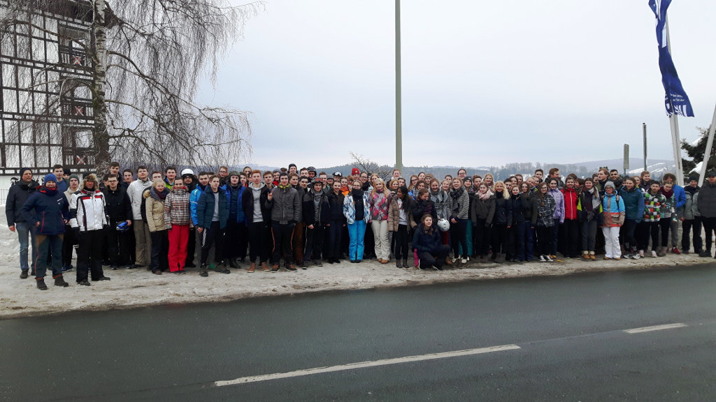 Am Mittwoch, den 25.01.2017 ist unsere gesamte Stufe Q1 des UGs nach Neuastenberg zum Skifahren aufgebrochen. Nach einer kurzen Busfahrt bekamen wir direkt unsere vorher bestellten Skimaterialien ausgehändigt. Als wir es alle in unsere Skischuhe geschafft hatten, ging es auch schon in unsere kleinen Skigruppen, angeführt von unseren Lehrkräften. Mithilfe der Schüler, die bereits Skikenntnisse hatten, lernten wir schnell die Grundkenntnisse des Skifahrens und schafften es so, die Piste heile herunter zu kommen.