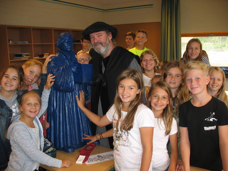 Nachdem im laufenden Jahr schon zahlreiche Veranstaltungen mit Vorträgen und Diskussionen zum 500 jährigen Reformationsjubiläum und zum Gedenken an Martin Luther an den Ursulinenschulen stattgefunden haben, hatte sich der schulische Arbeitskreis um Ulrike Dannenberg, Christian Brockmeyer und Hans Dieter Brüggenkamp für die Kleinsten in der Schule etwas ganz Besonderes überlegt: „Luther besucht die neuen Fünftklässler!“
