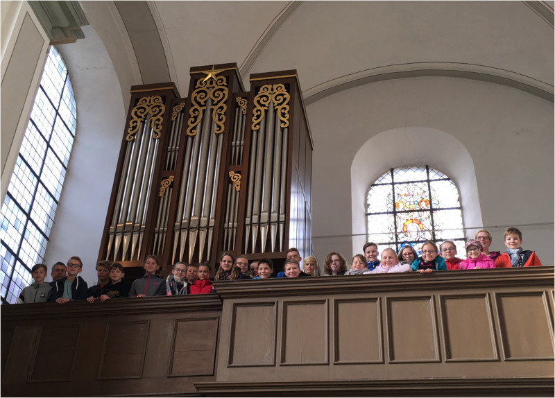 Der Organist Herr Gutwin nahm uns direkt in Empfang und erläuterte uns interessante Informationen zu der kleineren Altarorgel und der größeren Kirchenorgel auf der Orgelbühne. Zur Veranschaulichung hatte er Orgelpfeifen mitgebracht, die einige Schülerinnen und Schülern von uns auch ausprobieren durften. Wir hatten viele Fragen und so gingen die zwei Musikstunden auch schnell um. Wir hatten alle viel Spaß an diesem kleinen Ausflug und hoffen, dass wir noch mehr solcher Projekte machen werden.