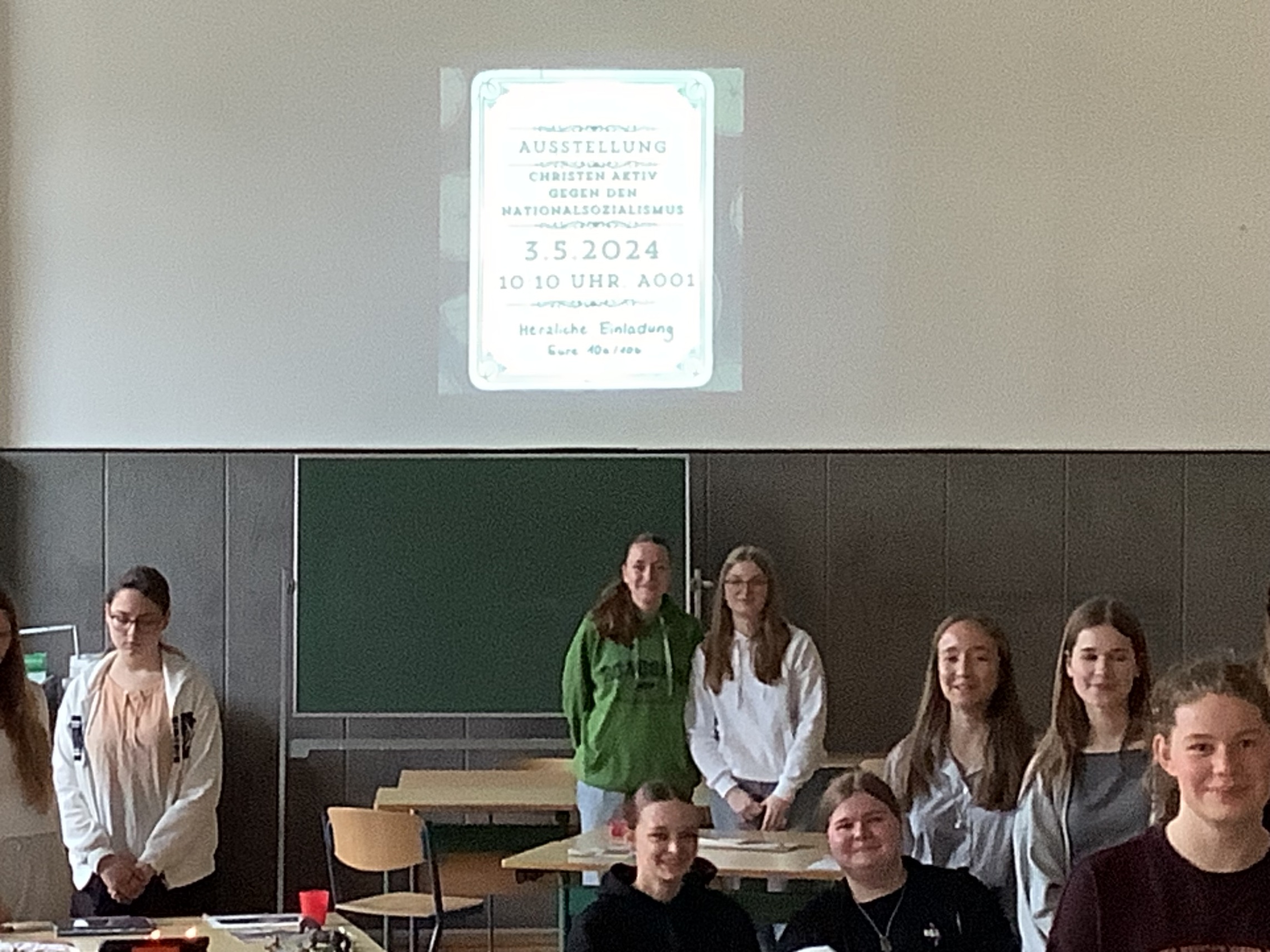 Am Freitag, den 3. Mai 2024, haben Schülerinnen und Schüler des Gymnasiums der Klassen 10 a und b, zusammen mit Frau Bieker eine Ausstellung zu dem Thema „Christen aktiv gegen den Nationalsozialismus“ vorgestellt.