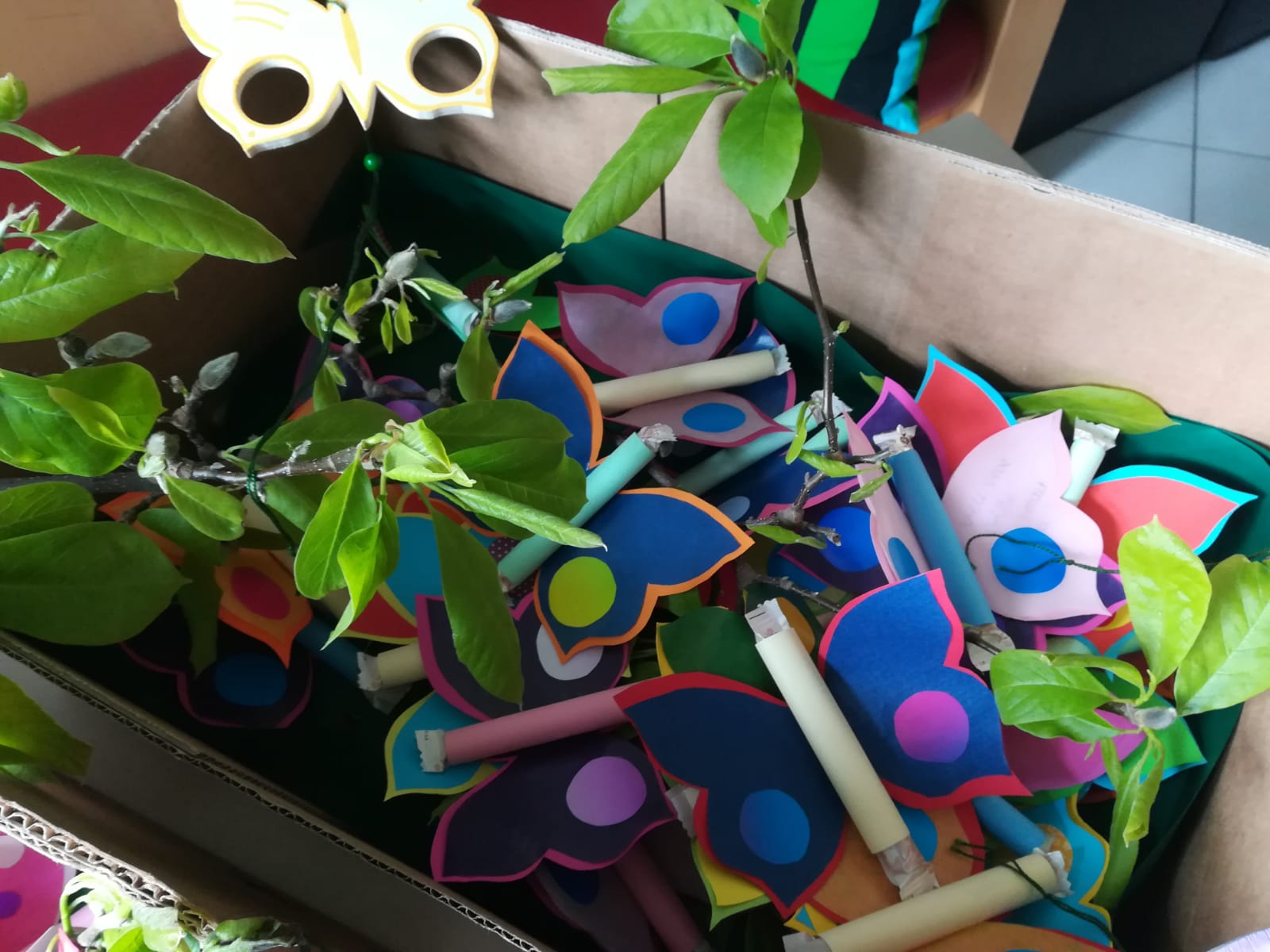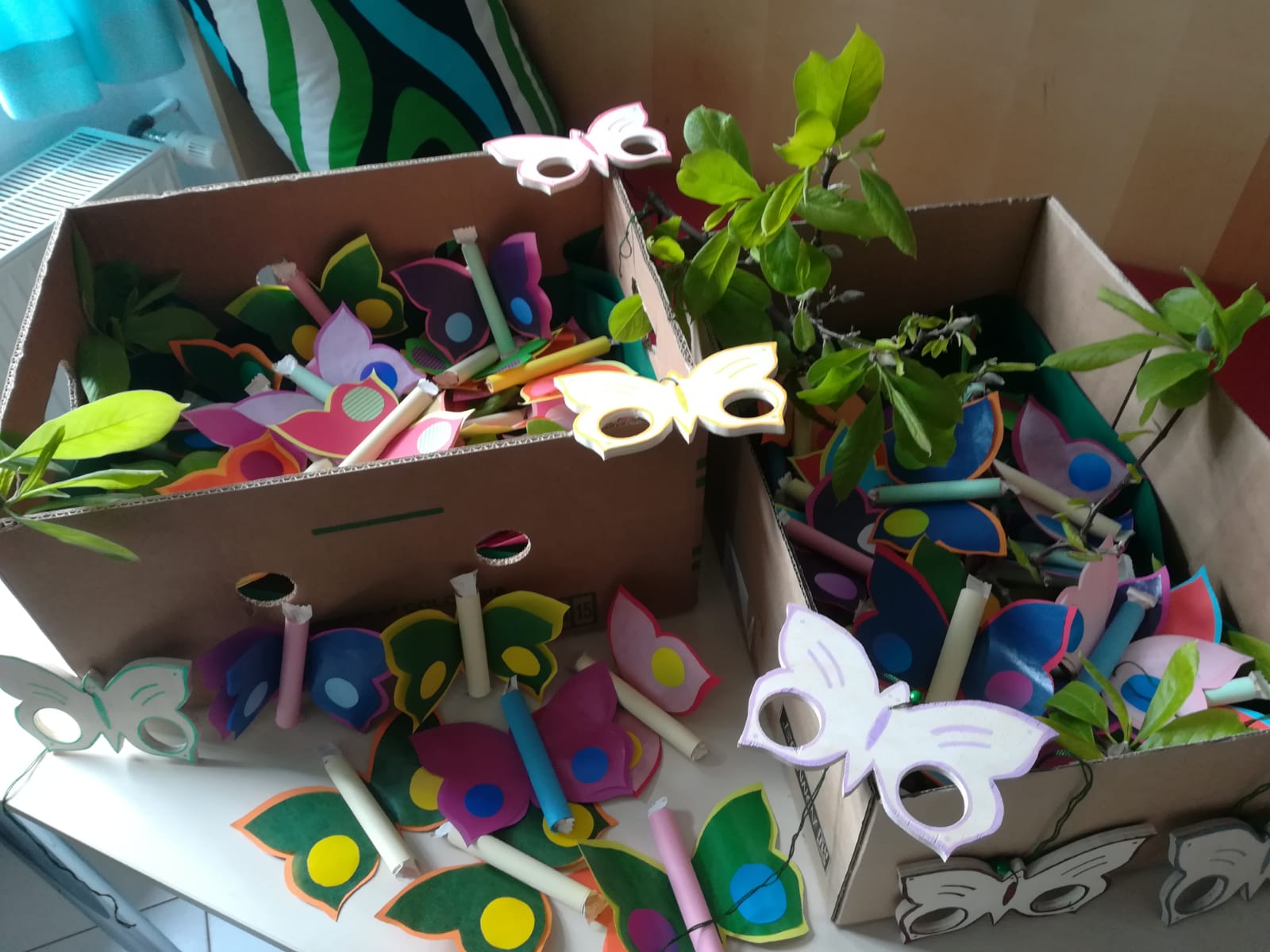 Mit ihrer aktuellen Bastelaktion wollen sie jetzt etwas Frühlingsstimmung zu den Bewohnerinnen und Bewohnern ins Haus bringen. Die Schmetterlinge sind mit einer Süßigkeit und einem Frühlingsgedicht bestückt und sollen ein kleiner persönlicher Gruß für jeden Bewohner sein. Als Fensterschmuck finden sie vielleicht anschließend einen Platz in einigen Zimmer.