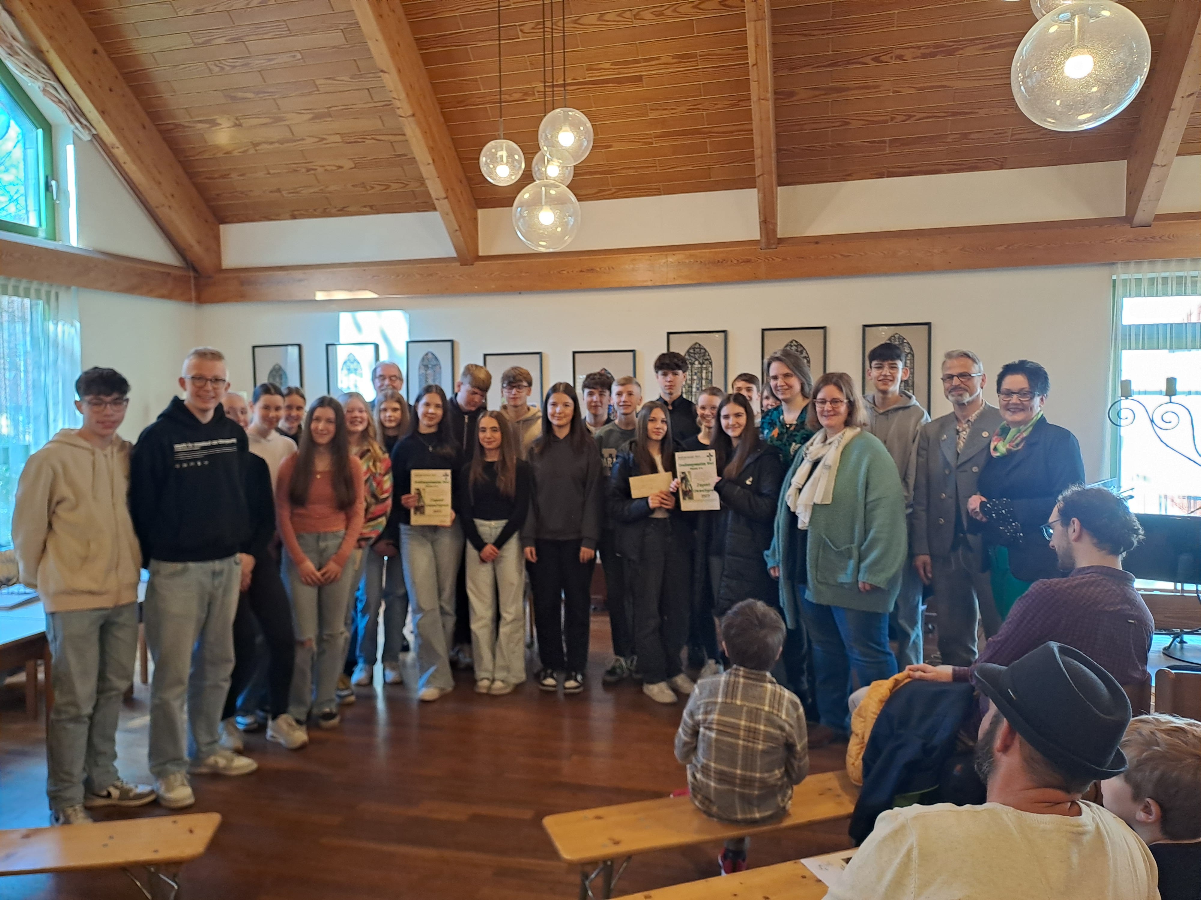 Die Ehrung der Preisträger, an der zahlreiche Schüler/innen sowie die Schulleiterin Andrea Frölich (UR) und die Konrektorin des UG, Julia Prowe, teilnahmen, fand in diesem Jahr im Walburghaus der Propsteigemeinde statt. Musikalisch wurde die Preisverleihung von der Ursulinen-Schülerin Maria Snurnykova am Klavier untermalt.