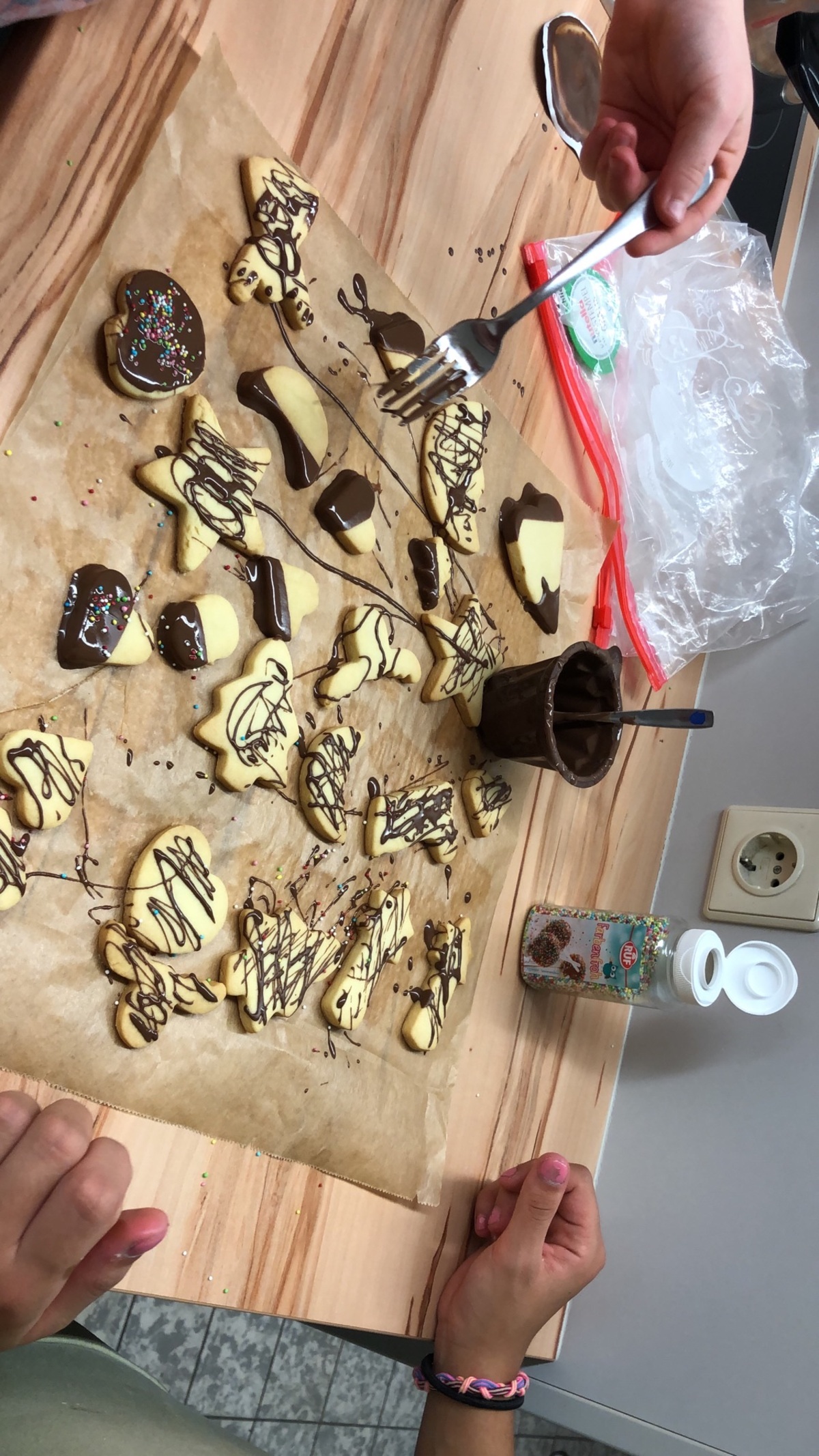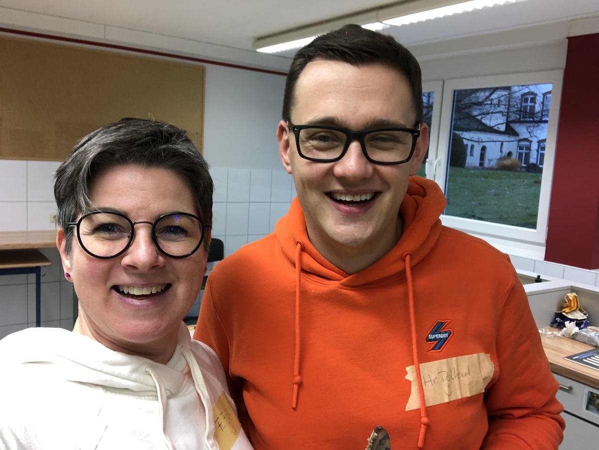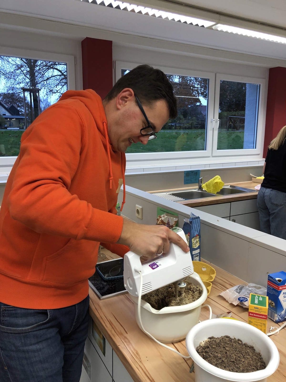 Mit Unterstützung einiger Mütter haben Herr Polhout und Frau Frölich backen lassen.