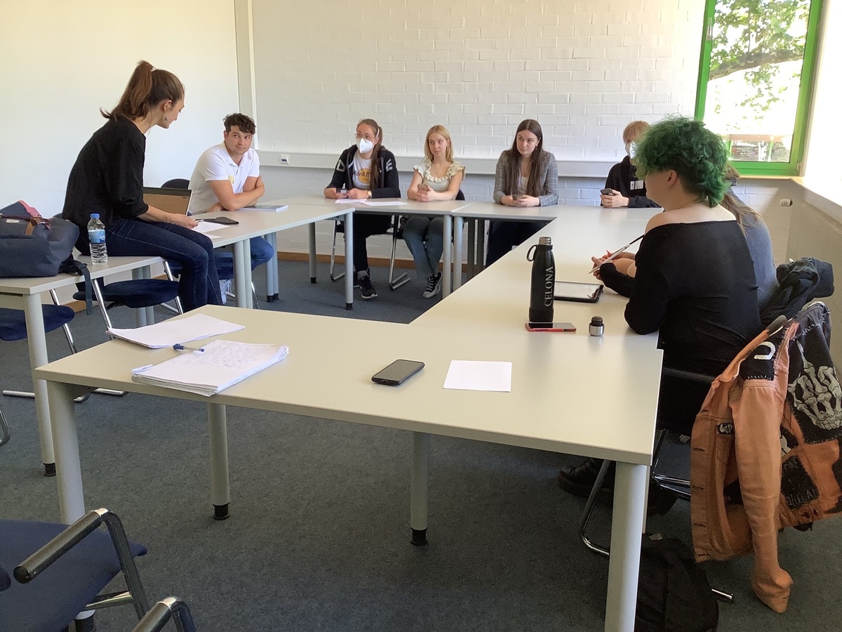 Acht Schüler*innen der Stufe Q1 unseres Gymnasiums und zwei ihrer Lehrer, Ulrich Fries und Wolfgang Becker (beide Mitglieder der Europagruppe), haben am Mittwoch, den 22.06.2022, 8.30-17.00 Uhr, im Dortmunder Keupinghaus an dem Planspiel "Simulation des Europäischen Parlaments" (SimEP) teilgenommen.