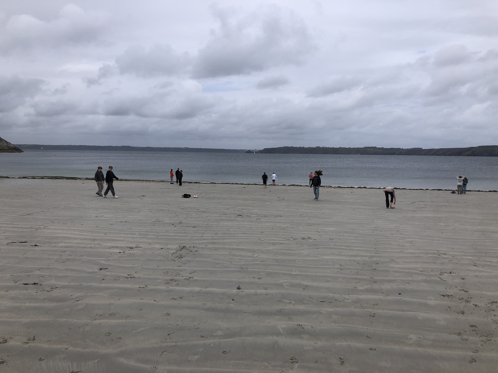 Als wir nach einer langen Nachtfahrt heute in Camaret ankamen, gab es eine freundliche Begrüßung und eine kleine Führung durch den Club Léo Lagrange. Danach haben wir schnell unser Gepäck aus dem Bus in unsere Zimmer verräumt und als wir damit fertig waren, hatten wir noch genug Zeit, um z.B. zum Strand oder in die Stadt zu gehen. Später trafen wir dann in der Herberge wieder zusammen, um Mittag zu essen, wozu auch unsere französischen Partner pünktlich eintrafen. Nach einer kurzen Pause haben wir dann alle zusammen ein paar Sprachspiele gespielt, um unsere neuen Partner besser kennenzulernen und mit ihnen ins Gespräch zu kommen. Nach kurzer Zeit fiel uns auch die französische Sprache nicht mehr so schwer. Als wir damit fertig waren, gingen wir mit allen zum Strand und spielten auch dort noch ein paar Spiele. Gleich gibt es Abendessen und danach steht ein Spieleabend mit selbst mitgebrachten Brettspielen auf dem Plan.