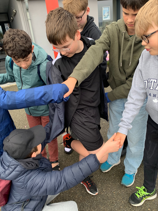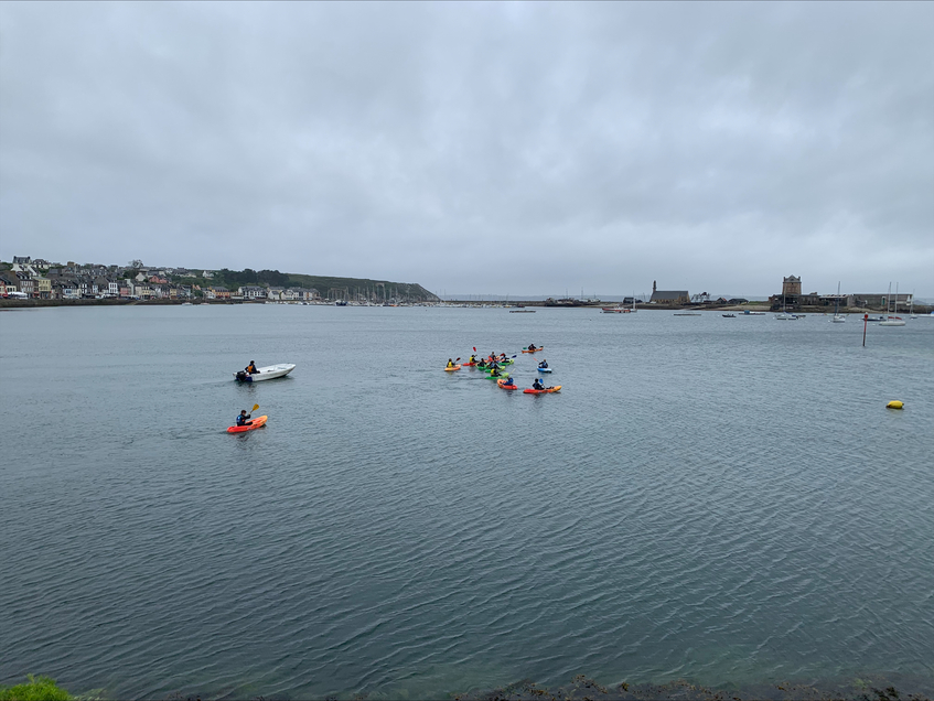 Heute, le mardi, 28 mai 2024, ging der Tag mit einem entspannten Frühstück los. Um 9 Uhr haben wir uns dann Neoprenanzüge angezogen und sind mit einem Boot zu den Kajaks gefahren. Dort angekommen wurden wir in den Kayaks mit einem Motorboot in eine strömungssichere Zone gebracht. Mit unseren Booten haben wir verschiedene Spiele, z.B. Fang- und Suchspiele gespielt. Wir mussten dort u.a. so schnell wie möglich Tennisbälle aufsammeln. Das Team, das am Ende die meisten Bälle gesammelt hatte, war Sieger. On a kiffé. Am Ende sind ein paar von uns noch ins kalte Wasser des Atlantiks gesprungen.