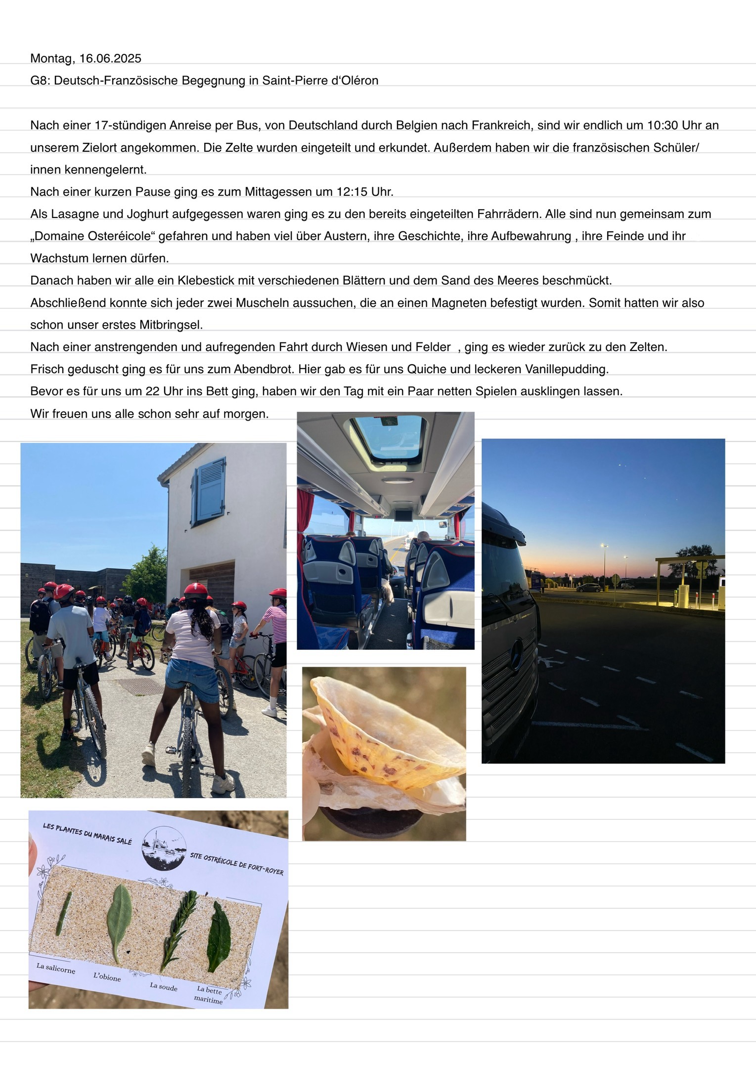 Schülerinnen und Schüler unserer Klasse 8 berichten von der Begegnung in Saint-Pierre-d‘Oléron (Frankreich) mit dem Collège Forlen aus Saint-Louis.